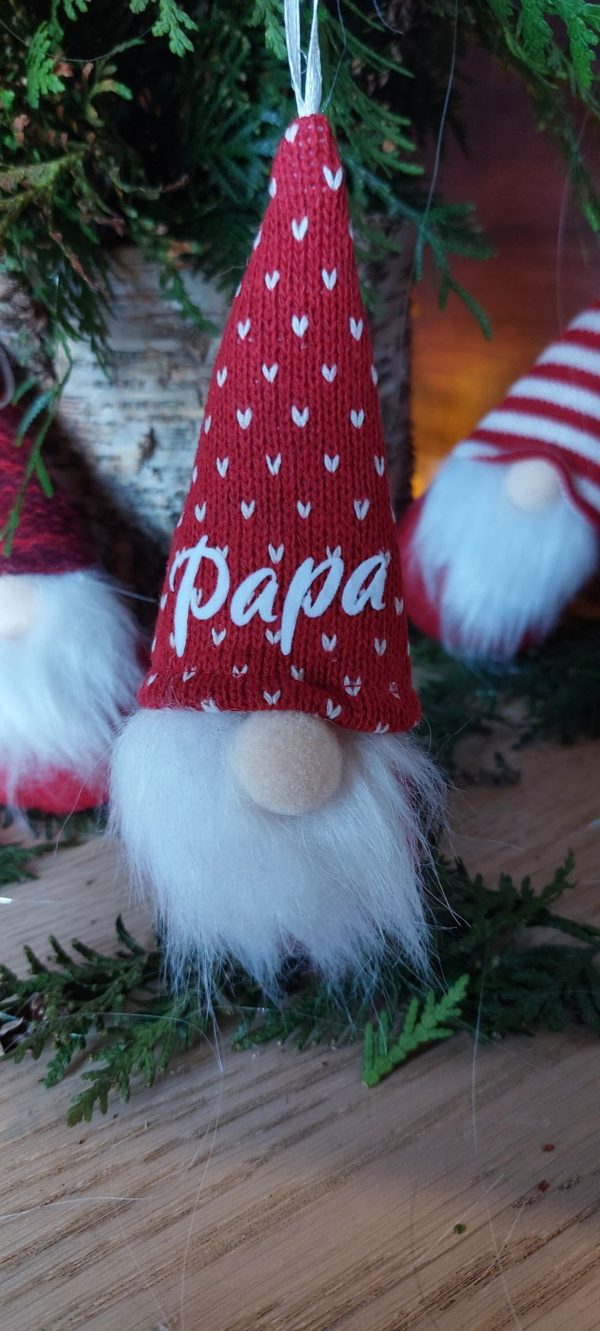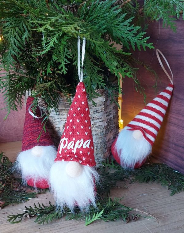 Apportez une touche de magie et de charme scandinave à votre sapin de Noël avec nos adorables petits gnomes en tissu rouge et blanc, disponibles en trois modèles uniques. Chaque gnome apporte une ambiance chaleureuse à vos décorations. Ces gnomes peuvent être personnalisés grâce à l’application de flock blanc, permettant d’ajouter un prénom pour en faire une décoration vraiment unique et pleine de caractère. Ils sont parfaits pour orner votre sapin ou pour offrir un cadeau personnalisé et original à vos proches.
