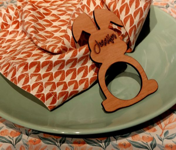 Ajoutez une touche élégante et ludique à vos tables avec nos ronds de serviette en bois personnalisés, en forme de lapin. Parfaits pour Pâques, anniversaires ou tout autre événement festif, ces adorables lapins en bois rehausseront instantanément la présentation de vos serviettes tout en apportant une note unique et chaleureuse.